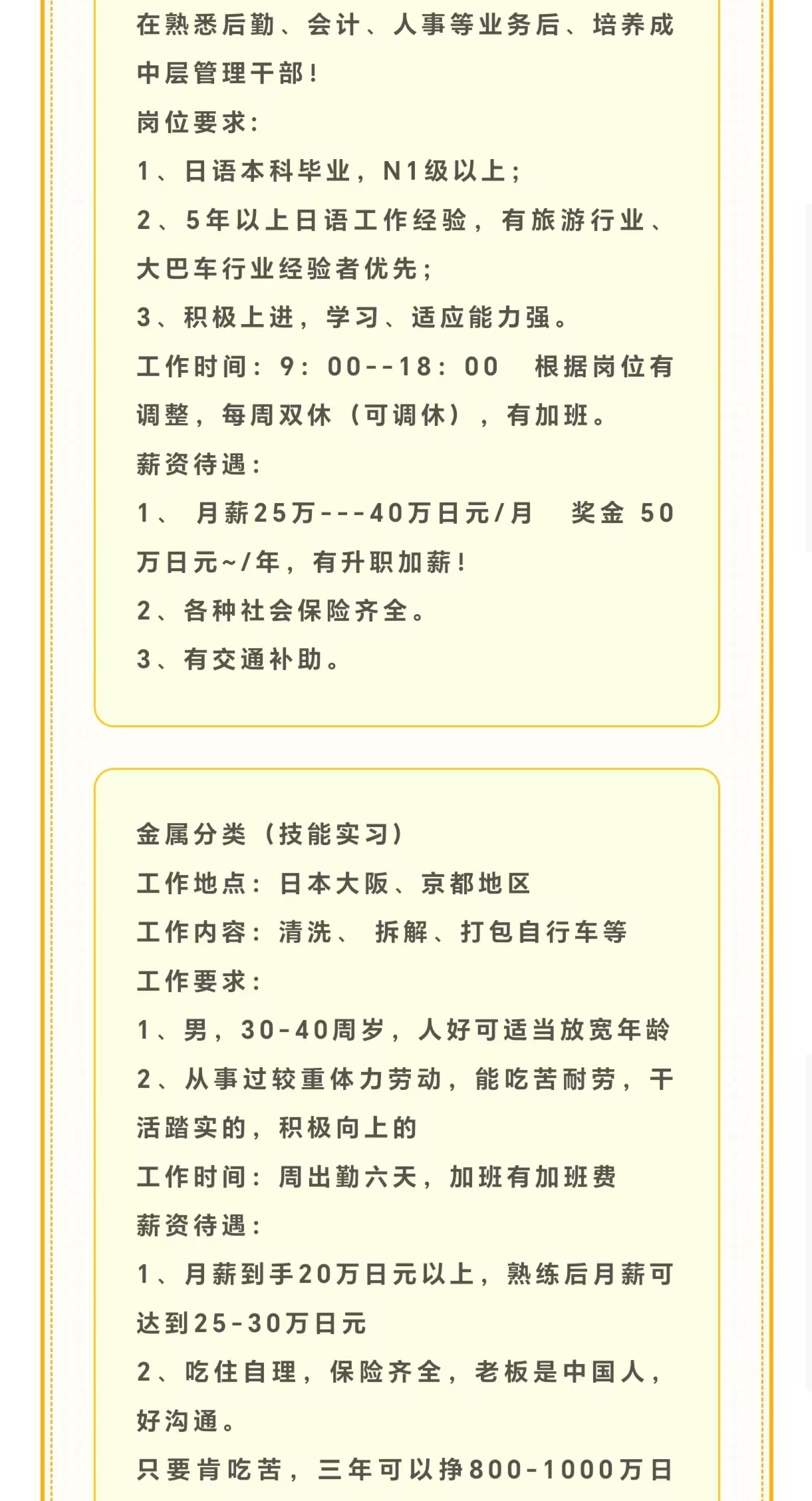 【日本就业】..岗位合集,男女岗位皆有,薪资高待遇好,速来看!
